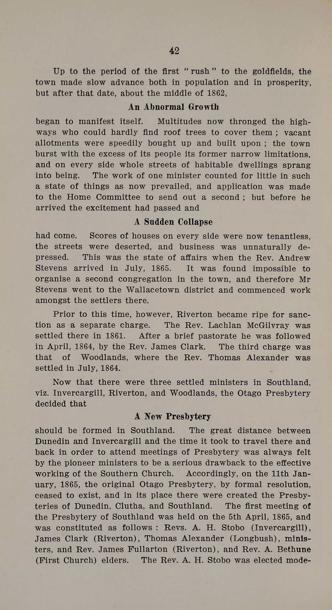 - First Church, Invercargill : jubilee, 1860-1910 : a short history of the First Presbyterian Church of Southland from 1860 to 1910, as well as a short history of the beginning of Christian influence amongst the natives of New Zealand and of the Presbyterian Church of N.Z. in both islands