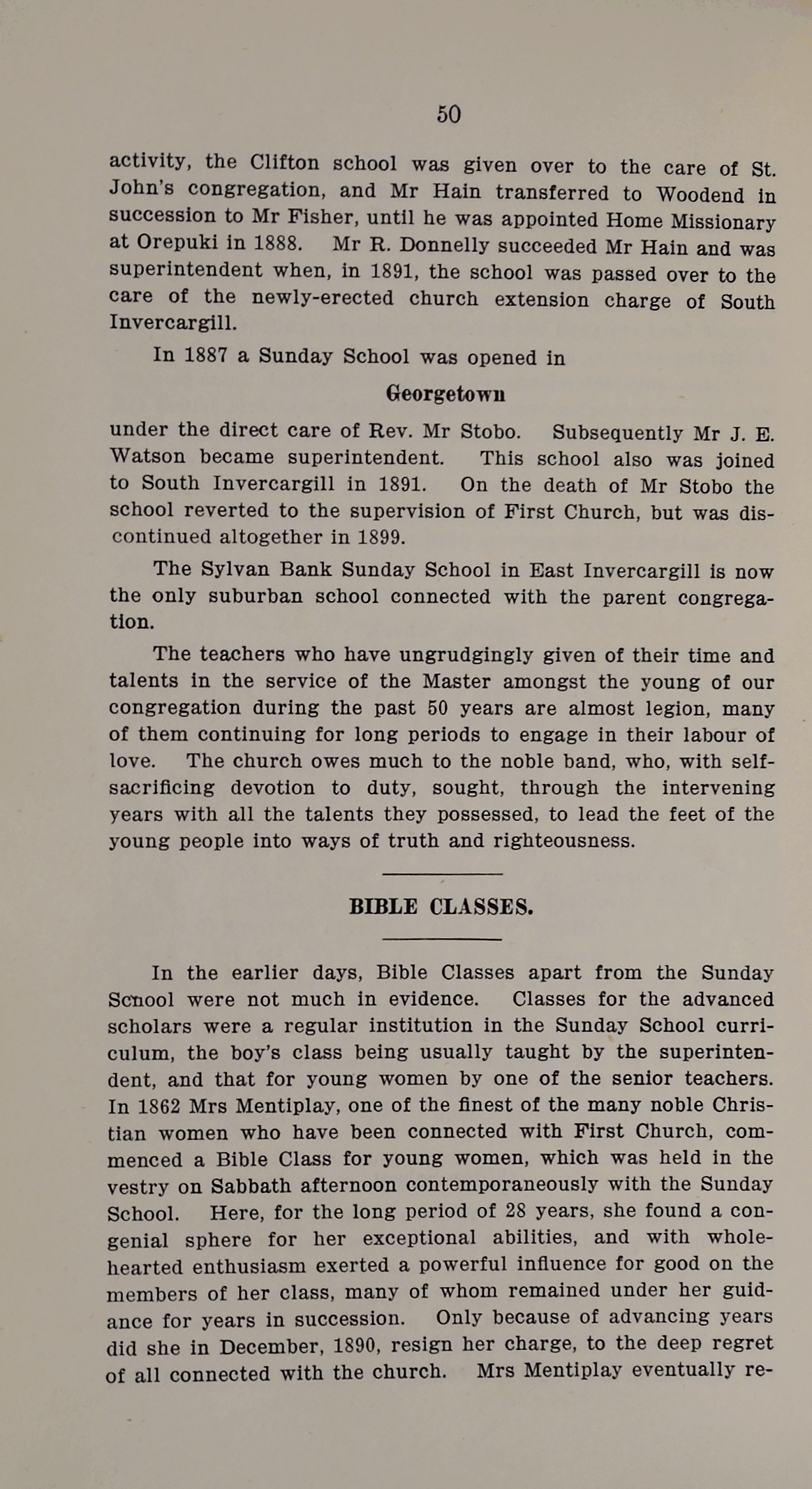- First Church, Invercargill : jubilee, 1860-1910 : a short history of the First Presbyterian Church of Southland from 1860 to 1910, as well as a short history of the beginning of Christian influence amongst the natives of New Zealand and of the Presbyterian Church of N.Z. in both islands