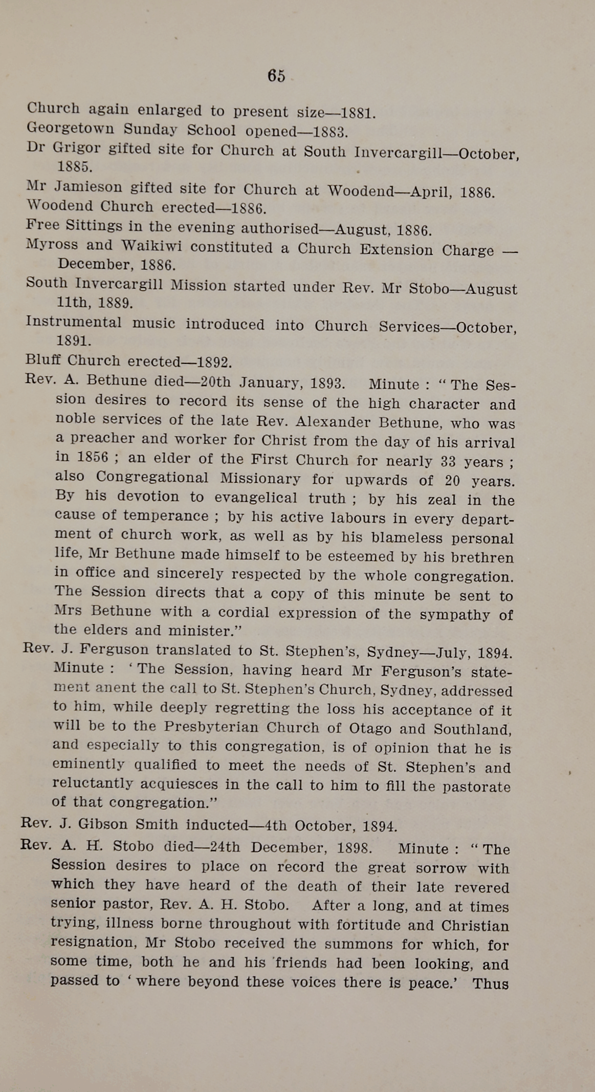 - First Church, Invercargill : jubilee, 1860-1910 : a short history of the First Presbyterian Church of Southland from 1860 to 1910, as well as a short history of the beginning of Christian influence amongst the natives of New Zealand and of the Presbyterian Church of N.Z. in both islands