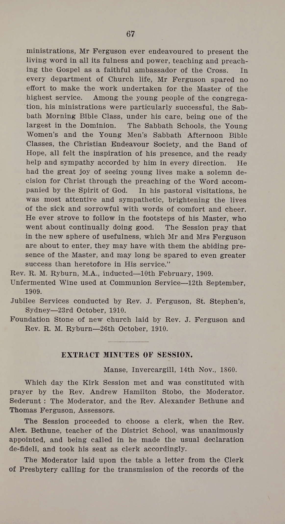 - First Church, Invercargill : jubilee, 1860-1910 : a short history of the First Presbyterian Church of Southland from 1860 to 1910, as well as a short history of the beginning of Christian influence amongst the natives of New Zealand and of the Presbyterian Church of N.Z. in both islands