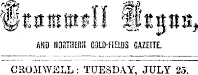 Cromwell Argus AND NORTHERN GOLD-FIELD GAZETTE. CROMWELL: TUESDAY, JULY 25.