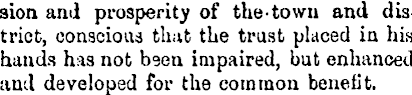 sion and prosperity of the-town and district, conscious that the trust placed in his hands has not been impaired, but enhanced and developed for the common benefit.