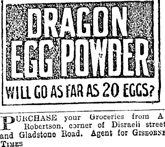 WILL GO AS MR AS 20 EGGS? PUKCHASE your Groceries from A liobertson, corner of Disraeli street and Gladstone Road. Agent for Giseob.ne Xihes
