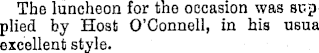 The luncheon for the occasion was supplied by Host O’Connell, in his usual excellent style.