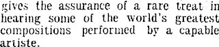 gives the assurance of a rare treat in hearing some of the world’s greatest compositions performed by a capable artiste.