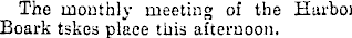 The monthly meeting of the Harbor Boark tskes place this afternoon.