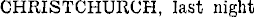 CHRISTCHURCH, last night.