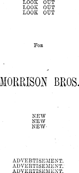 LOOK OUT LOOK OUT LOOK OUT For MORRISON B 1 .. NEW NEW NEW ADVERTISEMENT. ADVERTISEMENT. ADVERTISEMENT.