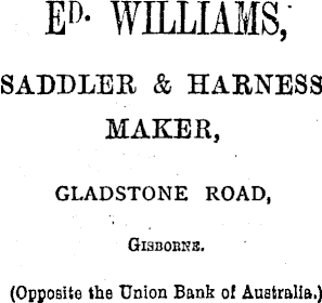 E D * WILLIAMS, SADDLER & HARNESS MAKER, GLADSTONE ROAD, Gisbobkb. (Opposite the Union Bank of Australia.)