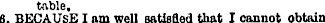 table, 6. BECAUSE I am well satisfied that I cannot obtain