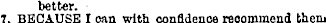 better. 7, BECAUSE I can with confidence recommend them