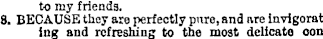 to my friends. 8. BECAUSE they are j>erfectly pure, and are invigorat ing and refreshing to the most delicate oon-
