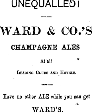 UNEQUALLED I WARD & CO.’S CHAMPAGNE ALES At all :J Leadino Clbbs and_Hotels. Have no other ALE while you can get WARD’S.