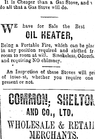 It 13 Cheaper than a Gas Stove, and \ do all that a Gas Stove will do. have for Sale the Best OIL HEATER, Being a Portable Fire, which can be plai in any position required and shifted fr room to room at will. Smokeless. OdonrU and requiring NO chimney. An Inspection of these Stoves will prc of inter- st, whether you require one present or not. AND CO,, LTD, WHOLESALE & RETAIi MERCHANTS.