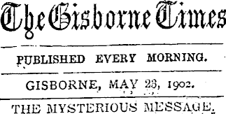 The Gisborne Times PUBLISHED EVERY MORNING. GISBORNE, MAY 23, 1902. THE MYSTERIOUS MESSAGE.