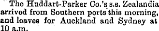Tho Huddart-Parker Co.’s s.s. Zealandia arrived from Southern ports this morning, and leaves for Auckland and Sydney at 10 a.m.