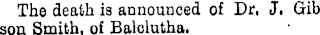 Tho death is aunounced of Dr. J. Gibson Smith, of Balclutha.