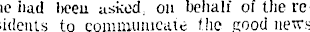 lie had been asked, on behalf of the residents to communicate the good news