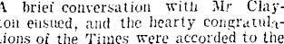 A brief conversation witfi Mr Clayton ensued, and the hearty congratulations of the Times were accorded to the