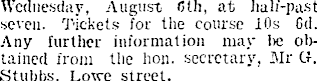 Wednesday, August filli, at half-past seven. Tickets for the course 10s Gd. Any further information may lie obtained from the bon. secretary, Mr G. Stubbs, Lowe street.
