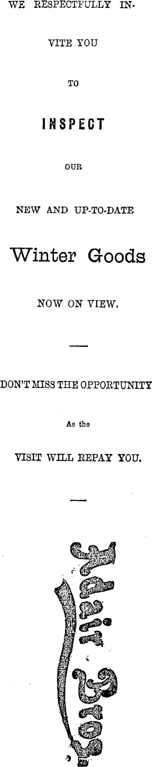 WE RESPECTFULLY INVITE YOU TO INSPECT OUR NEW AND UP-TO-DATE Winter Goods NOW ON VIEW. DON’T MISS THE OPPORTUNITY, As the VISIT WILL REPAY YOU. 3