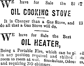 E have (or Sale the B 1 iT OIL CSGfOKG STOVE 'E have for Sale the Best OIL HEATER, Being a Portable Fire, which can be pi fd m any portion required and shifted ra room to room at will. Smokeless, Odoui 4 and requiring M 3 ebimnev. ’