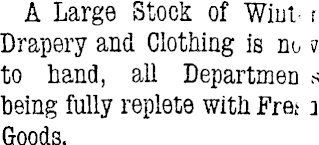 A Large Stock of Wiut ? Drapery and Clothing is n<, ? to hand, all Departmeo s being fully replete with Fre; i Goods.