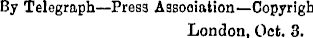 By Telegraph—Press Assooiation—Copyrigb ! London, Oct. 3.