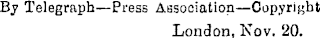 By Telegraph—Press Association—Copyright London, Nov. 20.