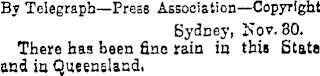 By Telegraph—Press Association —Copyright Sydney, Nov. 80. There has been fine rain in this State and in Queensland,