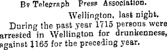 Bv Telegraph Press Association. Wellington, last night. During the past year 1715 persons were arrested in Wellington for drunkenness, against 1165 for the preceding year.
