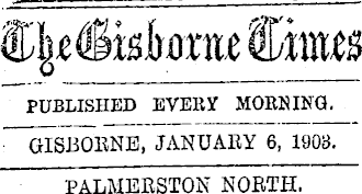 The Gisborne Times. PUBLISHED EVERY MORNING. GISBORNE, JANUARY 6, 1903. PALMERSTON NORTH.