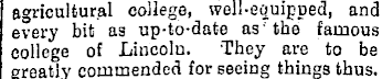 agricultural college, well-equipped, and every bit as up-to-date as'the famous college of Lincoln. They are to be greatly commended for seeing things thus.