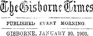 The Gisborne Times PUBLISHED EVERY MORNING GISBORNE, JANUARY 30, 1903.