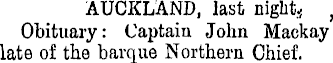 AUCKLAND, last night* , Obituary: Captain John Maekay late of the barque Northern Chief.