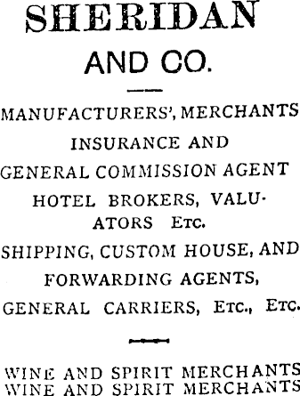 SHE KID AN AND CO. MANUFACTURERS’, MERCHANTS INSURANCE AND GENERAL COMMISSION AGENT HOTEL BROKERS, VALUATORS Etc. SHIPPING, CUSTOM HOUSE, AND FORWARDING AGENTS, GENERAL CARRIERS, Etc., Etc. WINE AND SPIRIT MERCHANTS i WINE AND SPIRIT MERCHANTS
