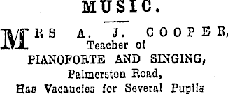 MUSIC II 8 A. J. COOPEE, Teacher ol PIANOFORTE AND SINGING, Palmerston Road, Hau Vacancies for Several Pupila