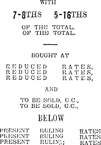 WITH 7-BTHS 5-16THS OF THE) TOTAL. OF THE TOTAL. BOUGHT AT E fiDUC E D RATE S, REDUCED RATE 8, REDUCED RATES, AND TO BE SOLD, U.C., TO BE SOLD, U.C.. BELOW PRESENT RULING RATES. PRESENT RULING RATES. PRESENT RATES.