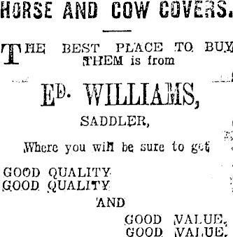HORSE AND COW COVEHS. HE BEST PLACE TO. BU J} THEM is from SADDLER, iWhere you wifi be sure to got GOOD QUALITY GOOD QUALITY AND GOOD .VALUE, GOOD VALUE,