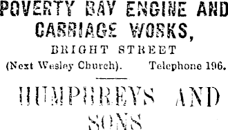 POVERTY BAY ENGINE AND CARRIAGE WORKS, BRIGHT STREET (Next \W.slny Church). Telephone 196. sons