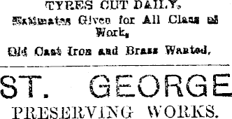 TYRES CUT D&II.Y, sEj.lilvßS.t~M Given for All Class b! Work, QM oa, at Iroa s.ad Bra** Wanted, ST. GEORGE PHE SE HYING Vv'OHKS.