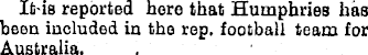 It-is reported here that Humphries has been included in tho rep. football team for Australia.