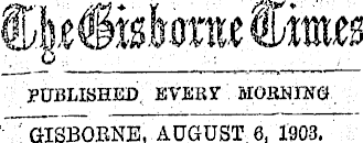 The Gisborne Times PUBLISHED EVERY MORNING GISBORNE, AUGUST 6, 1903.