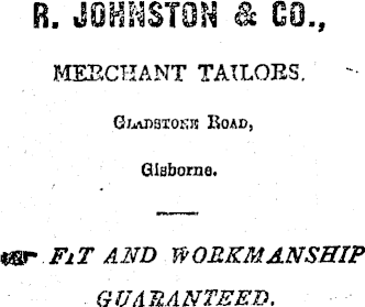 MERCHANT TAILORS. GJjaJibtokk Bo ad, Gisborne. *ST FiT AND WORKMANSHIP GUARANTEED.