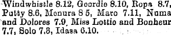 Windwhistle 8.12, Goordie 8.10, Ropn 8.7, Putty 8.6, Monura 8 5, Maro 7.11, Numa f and Dolores 7.0 Miss Lottio and Bonheur 7.7, Solo 7.3, Idasa 6.10.