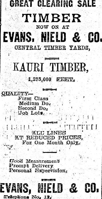 GREAT CLEARING SALE TIMBER NOW ON AT EVANS. MELD & GO. CENTRAL TIMBER YARDS, KAURI TIMBER, 1,275,000 FEJEJTj SHAunry— ; First Class ’ Medium Do, Second Doj 1 Uob Lotß.; KEC LINES ' ! KT REDUCED PRICES, For One Month Only, Cfood Measurement Prompt Delivery, Personal Supervision,: EVANS, HELD & 00. ITcSerpliona SMoj 12,