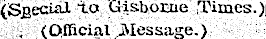 (Special to Gisborne Times.)| . (Official Message.)