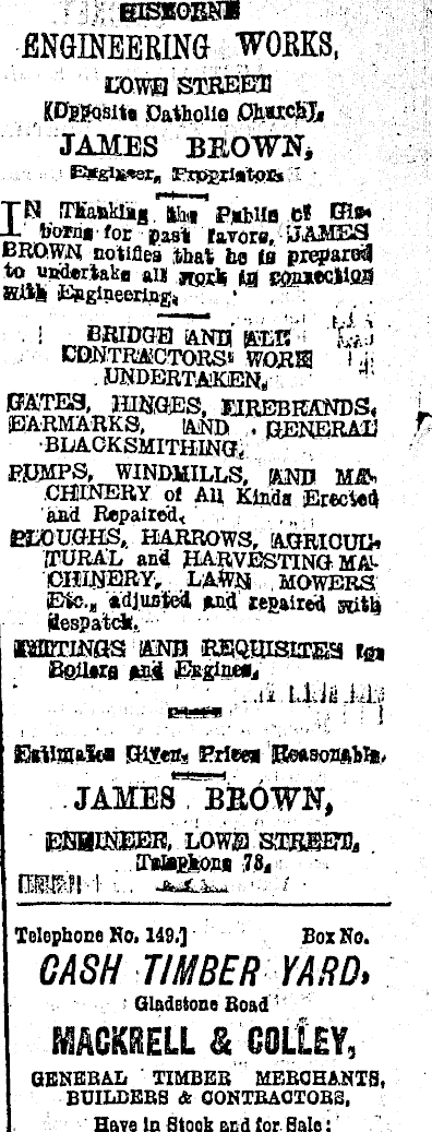 The Gisborne Herald Company is the copyright owner for the Gisborne Times. You can reproduce in-copyright material from this newspaper for non-commercial use under a Creative Commons Attribution-NonCommercial-ShareAlike 4.0 International licence (CC BY-NC-SA 4.0). This newspaper is not available for commercial use without the consent of the Gisborne Herald Company. For advice on reproduction of out-of-copyright material from this newspaper, please refer to the Copyright guide.
