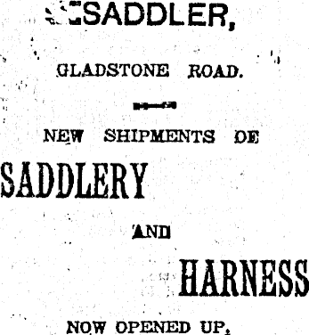 .GLADSTONE ROAD. ' NEW SHIPMENTS DE SADDLERY AND HARNESS NOW OPENED UP*