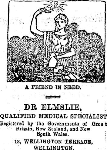 A FRIEND IN NEED. DR ELMSLIE, QUALIFIED MEDICAL SPECIALIST Registered by the Governments of Grea t Britain, New Zealand, and New Sf>utli Wales. 13, WELLINGTON TERRACE, WELLINGTON.